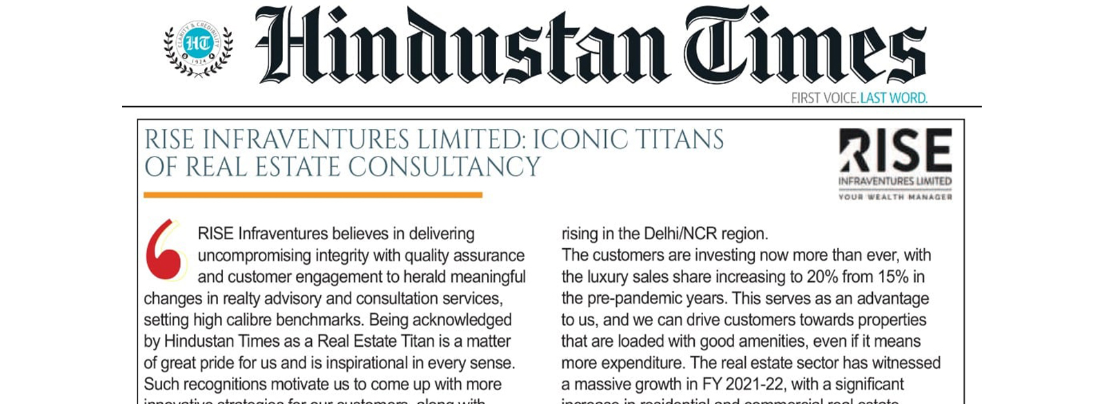 RISE Infraventures Limited, a real estate consultancy firm, has been rec....